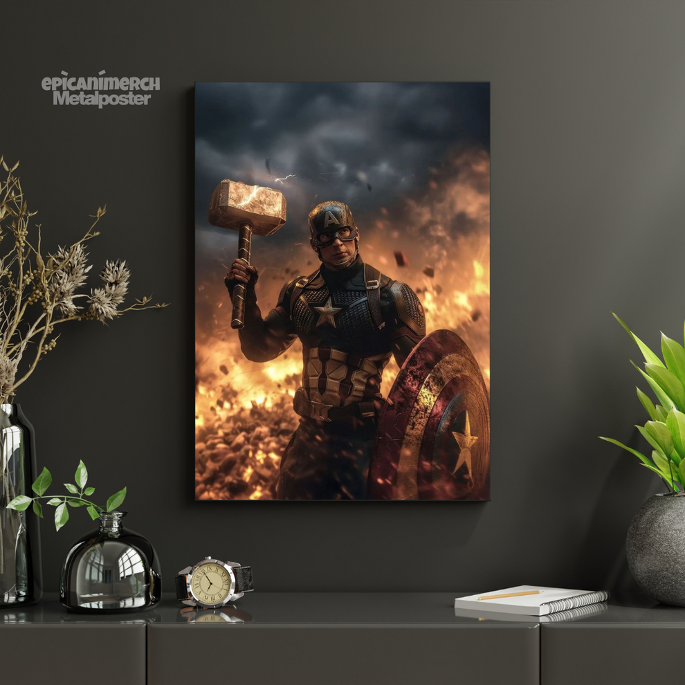 Captain America With Shield And Hammer Metal Print – Superhero Wall Art